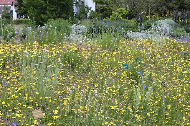 Die in der Staudenmischung "Silbersommer" verwendeten Arten sind größtenteils an trockene, heiße Plätze, eventuell auch Verkehrsinseln, angepasst. Auf den in der Region vorhandenen, Lehmböden kann nur ein Teil der verwendeten Arten eine in sich stimmige Pflanzengemeinschaft bilden. Diese Arten wurden ausgesucht. Nun wird getestet, welche weiteren Arten mit diesen kombiniert werden können, um eine ästhetisch ansprechende und gleichzeitig pflegeextensive Pflanzung, den "Silbersommer regional" zu erhalten.