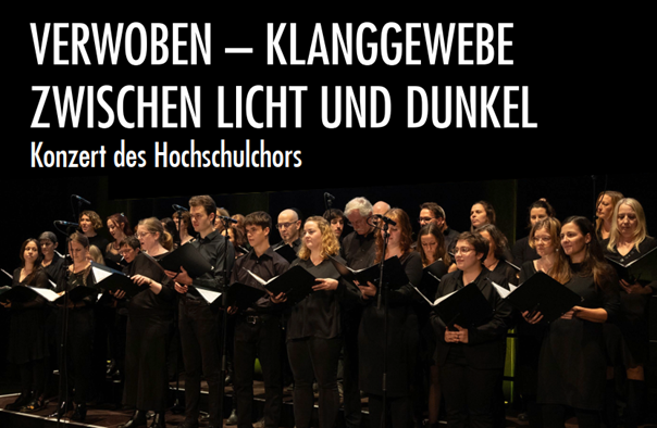 Sie sind herzlich eingeladen zum Konzert unseres Hochschulchors zum Abschluss des Wintersemesters 2025/26: "Verwoben - Klanggewebe zwischen Licht und Dunkel"
