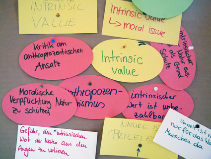 In Form von Vorträgen und Diskussionen mit verschiedenen ReferentInnen, Kleingruppenarbeiten, Textarbeiten, Exkursionen und Spielen setzten sich die Studierenden intensiv mit dem Konzept der Ökosystemdienstleistungen auseinander. Die Studierenden nahmen während der Akademie einzelne Methoden ökonomischer Bewertung wie z.B. Zahlungsbereitschaftsanalysen genauer unter die Lupe, diskutierten Umsetzungsmöglichkeiten in Wirtschaft und Politik und arbeiteten anschließend verschiedene methodische, naturschutzpolitische und ethische Kritikpunkte an dem Konzept gemeinsam auf.