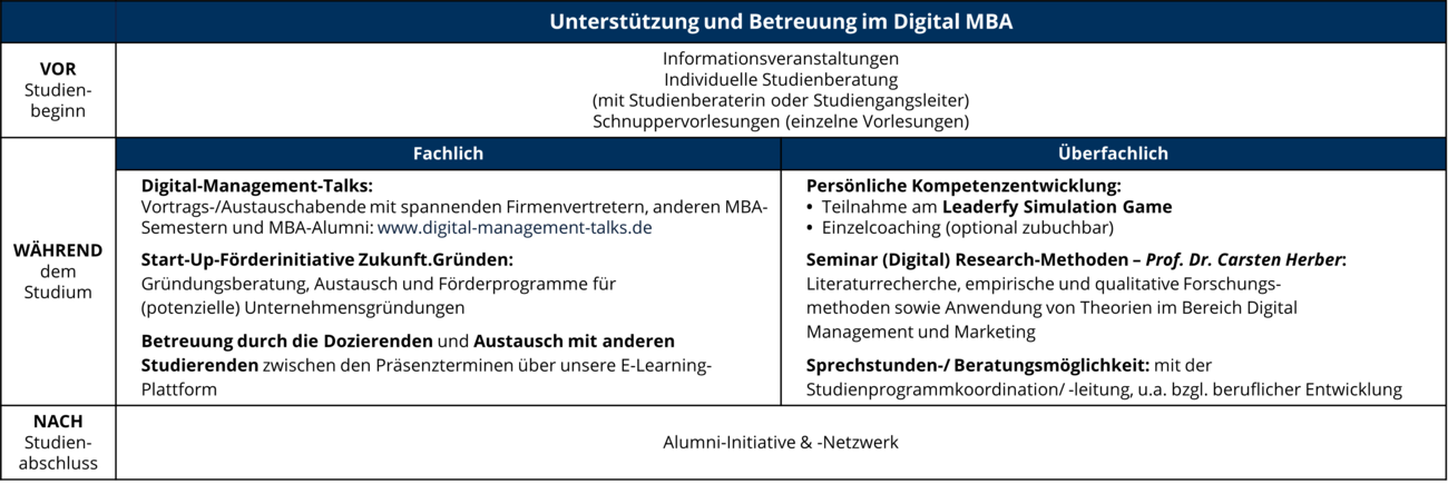 Überfachliche Betreuung und Unterstützung im Digital MBA