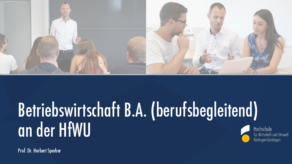 Die Hochschule für Wirtschaft und Umwelt (HfWU) in Nürtingen bietet Berufstätigen die Möglichkeit, den akademischen Abschluss Bachelor B.A. in Betriebswirtschaft zu erwerben. Das darauf gerichtete berufsbegleitende Studienprogramm ist so konzipiert, dass es sehr gut mit einer Vollzeit-Berufstätigkeit vereinbar ist.