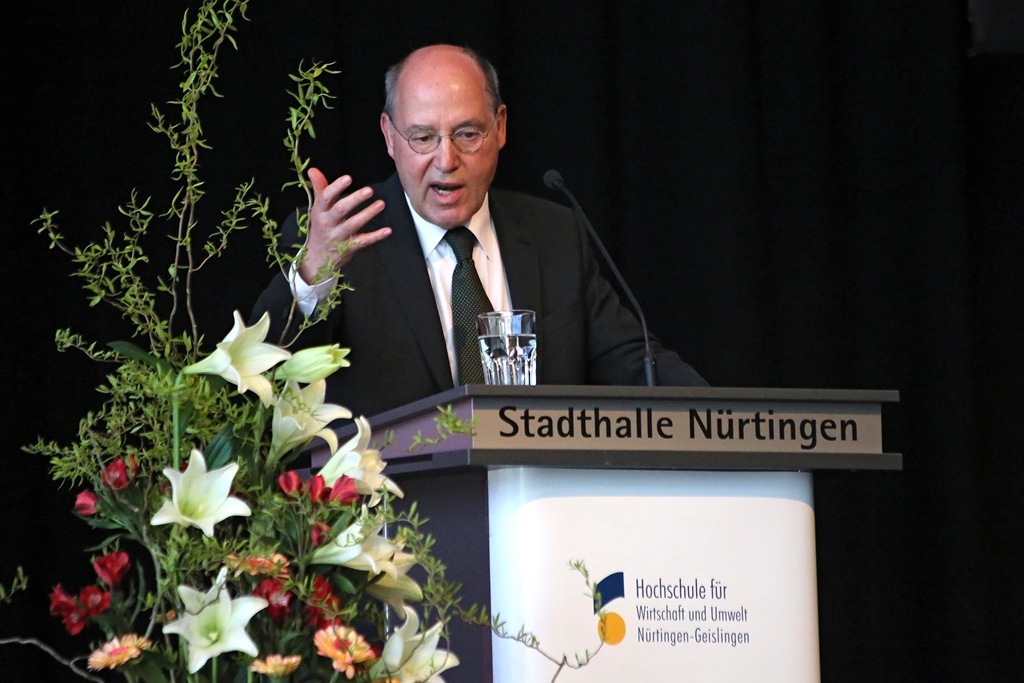 Dieser Blick aus unterschiedlichen Richtungen entspricht dem Anspruch der Hochschule für Wirtschaft und Umwelt die auch in der Ökonomie für die nachhaltige Entwicklung steht. Pluralismus gehört dazu der, so formulierte es HfWU-Rektor Professor Dr. Andreas Frey in seiner Begrüßung, „ein Geschenk in einer demokratischen Gesellschaft ist“.